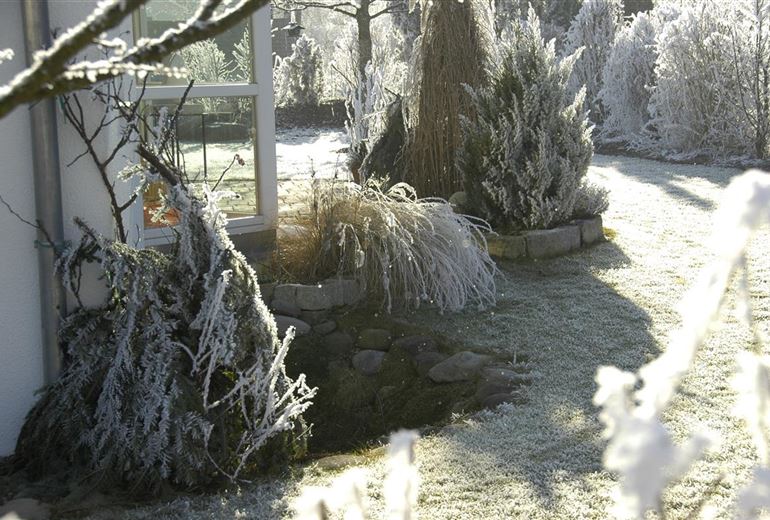 Jetzt heisst es eigentlich nur noch, alle wasserführenden Leitungen und Pumpen von Teich, Wasserhähnen und solarthermischer Anlage zu leeren, damit diese nicht einfrieren und platzen können, dann können Sie sich zurücklehnen und die Früchte Ihres Gartens vor dem prasselnden Kamin geniessen.