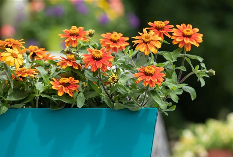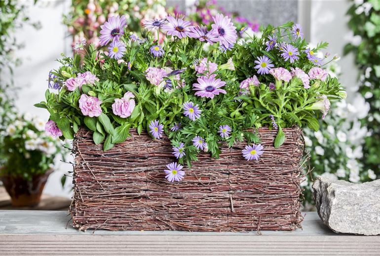 Eine Vielzahl von Balkonpflanzen kann in den Kübeln bunt zusammengemixt werden, was besonders schön aussieht. Jedoch muss hier bei der Auswahl darauf geachtet werden, dass sie die gleichen Bedürfnisse haben und nicht sonnen-und schattenliebende Blumen zusammenstehen. Auch der Wasserbedarf sollte ungefähr gleich sein. Ansonsten kann man sich hier mit getrennten Pflanzgefässen behelfen.