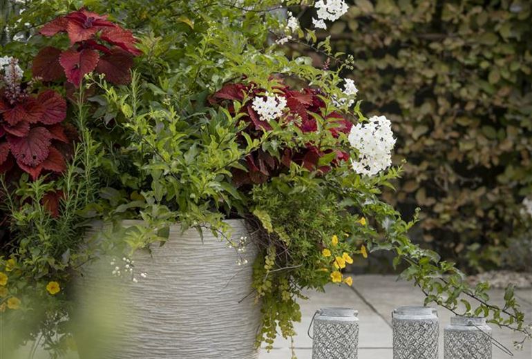 Tipp: Zur Dekoration, z.B. zur Weihnachtszeit können Ihre Kübel zusätzlich in farbige Rindenholzmatten oder Weidematten eingewickelt werden. Auch hübsche Bänder, Kordeln und Lichterketten zaubern eine festliche Stimmung.