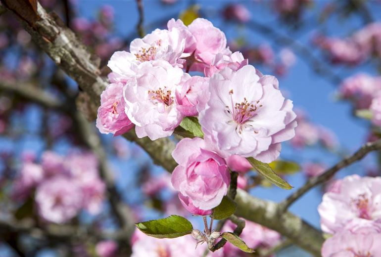 Mit gelben Zwergfrüchten bezaubert der Zierapfel. Und aus Feuerdorn oder Ilex leuchten zur Winterzeit auffällige orange-rote Früchte.