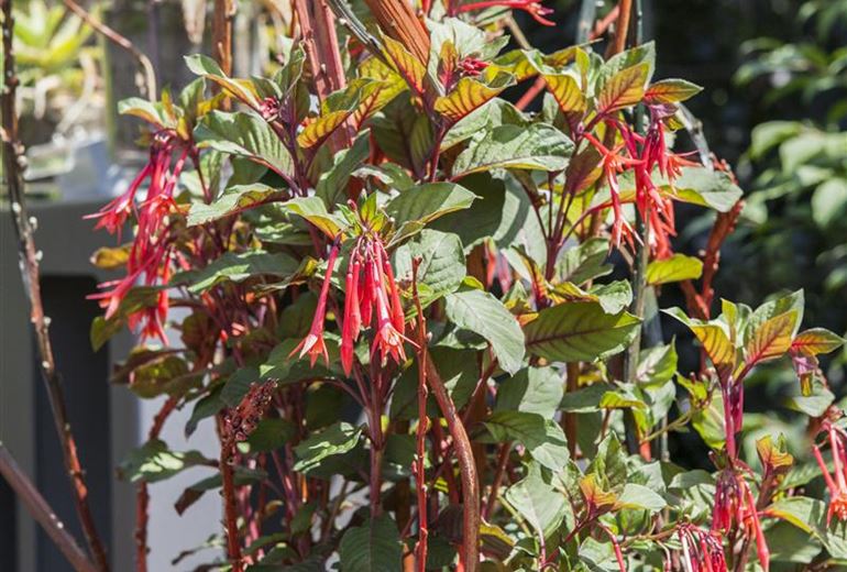 Die Klassiker in den Balkonkästen sind Fuchsien und Geranien. Besonders bei Fuchsien lohnt sich die Überwinterung, da die Pflanzen trotz Rückschnitt immer grösser und üppiger werden. Auch Geranien lassen sich gut überwintern, was eine teure Neuanschaffung im Frühjahr überflüssig macht.