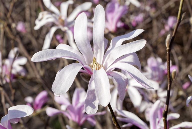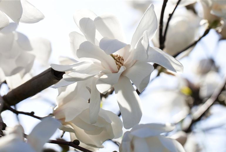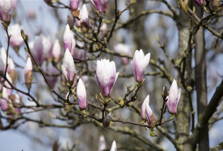 Die Magnolie ist etwas ganz Besonderes. Sie kann sich vom kleinen Strauch bis zum grossen Baum entwickeln und hat eine sehr lange Geschichte hinter sich. Die Magnolie gibt es seit mehr als 100 Millionen Jahren. Das macht sie zur ältesten Blühpflanze der Welt. Schon vor der Eiszeit war die Magnolie in Mitteleuropa heimisch. Bemerkenswert ist auch, dass sich aus der Magnolie alle anderen heute bekannten Laubgehölze entwickelt haben. Hierzulande sind Magnolien so beliebt, weil sie schon früh Farbe in den Garten bringen. Mit über 80 Arten ist für jeden Geschmack eine Magnolie dabei. Den Anfang macht die Stern-Magnolie an März mit ihren Blüten. Bis in den Sommer hinein blühen dann die unterschiedlichsten Magnolien.