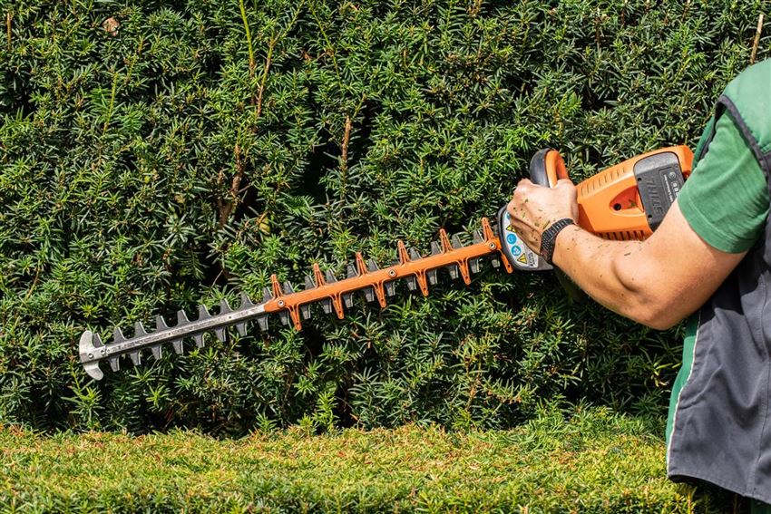 Um eine grosse Hecke zu trimmen, ist eine elektrische Heckenschere sinnvoll. Damit lassen sich nicht nur gleichmässigere Ergebnisse erzielen, zudem müssen Gärtner und Gärtnerinnen weniger Kraft aufwenden. Strombetriebene Geräte sind leichter im Gewicht und zeitlich unbegrenzt zu bedienen, akkubetriebene Heckenscheren hingegen meist leiser und zudem unabhängig von der Stromversorgung. Für einen akkuraten Formschnitt an formalen Hecken ist auch eine Richtschnur sehr hilfreich. Sie unterstützt Gärtner und Gärtnerinnen dabei, die Heckenpflanzen in Höhe und Breite gleichmässig zu stutzen. Informelle Hecken wirken hingegen ohne Richtschnur deutlich natürlicher und dynamischer. Kleinere Heckensäume oder niedrige Einfassungshecken lassen sich auch sehr gut mithilfe einer manuellen Heckenschere in Form bringen. Hier können Gärtner und Gärtnerinnen wertvolle Ressourcen sparen. Bei Blühhecken genügt es auch, nur einzelne Zweige mit einer scharfen Astschere abzutrennen, weil diese ohnehin am schönsten autonom wachsen.