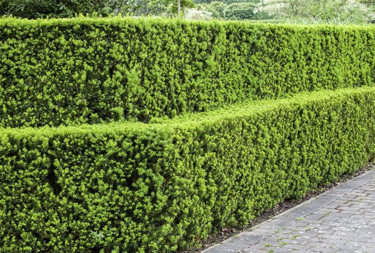 Wachholder, Zypressen und Thujen sind als Sichtschutz sehr beliebt, bedürfen aber eines jährlichen bis halbjährigen Rückschnitts um schön und in Form zu bleiben. Sie wachsen dann aber zu zuverlässig dichten Hecken heran, wenn Sie in einem Abstand von etwa 50 cm gepflanzt werden.