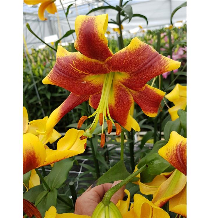 Mindestabnahme 5 Stück cremefarben mit braunrotem Schlund, 140cm, Juli-Aug.