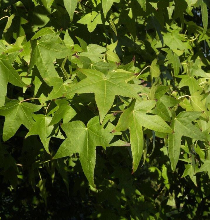 Der Amerikanische Amberbaum (Liquidambar styraciflua) ist ein Ziergehölz, das als Solitär eine besondere Wirkung erzielt. Seine gefingerten Blätter machen ihn unverwechselbar. Sie sind schön mittelgrün gefärbt. Im Herbst nehmen die sommergrünen Blätter purpurrote bis rot-orange Töne an. Seine Blüten, die er im Mai trägt, sind grüngelb. Ab September trägt er runde, braune Früchte, die sehr dekorativ wirken.