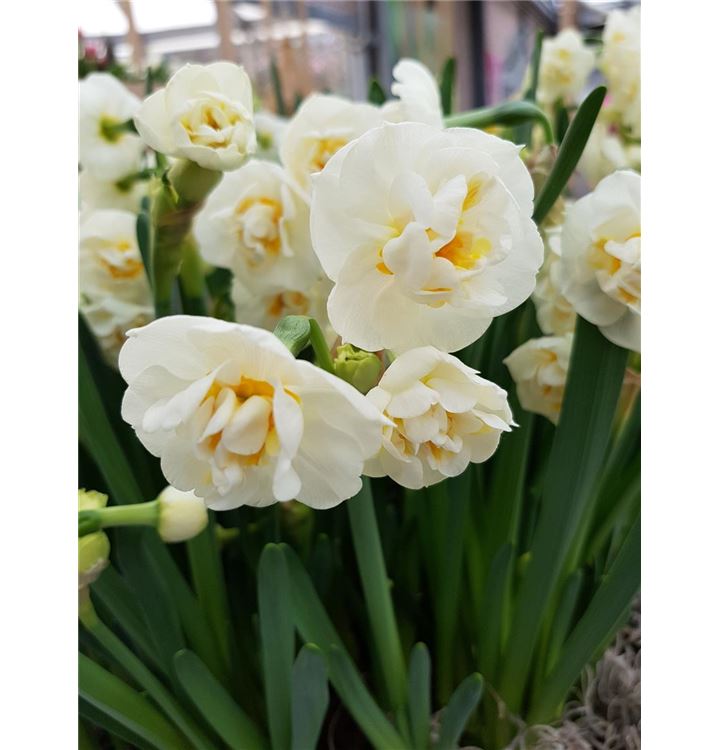 Mindestabnahme 10 Stück mehrblütig weiss, gelb gefüllt, 30cm, März