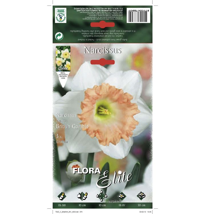 August - Dezember wird die Trompeten-Narzisse 'British Gamble' gepflanzt, dabei kommen die Zwiebeln bzw. Knollen etwa 15 cm bis 20 cm tief in die Erde.