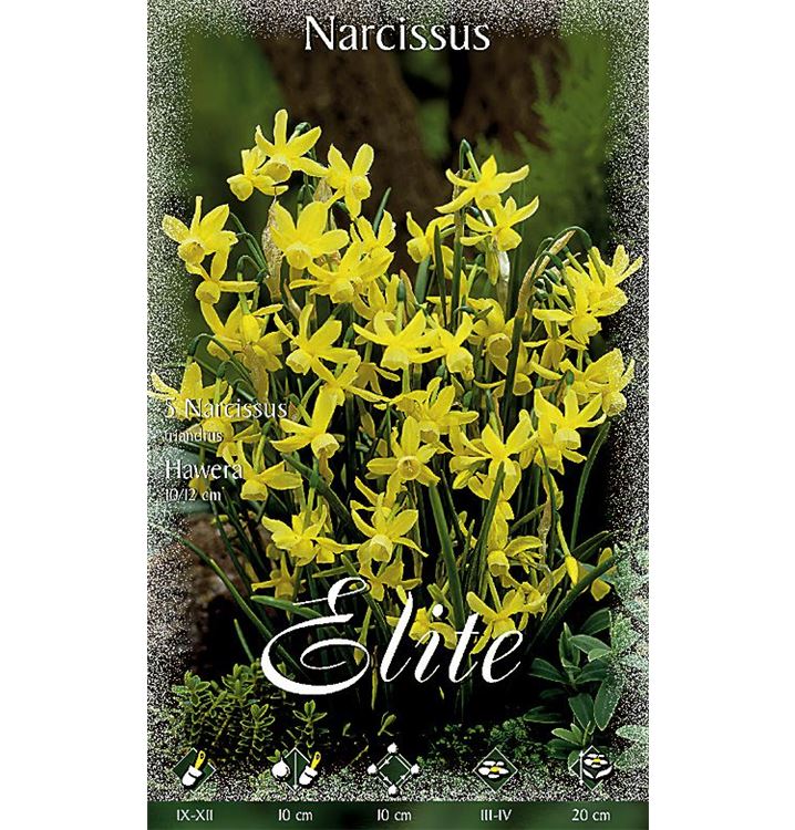 In schön bepflanzten Rabatten, aber auch in Kübeln auf der Terrasse oder in Kästen auf dem Balkon ist die Triandus-Narzisse 'Hawera' (Narcissus triandrus 'Hawera') immer wieder gern gesehen. Mit ihren radförmigen bis röhrenförmigen Blüten in Weiß, Gelb oder Orange trägt die Triandus-Narzisse 'Hawera' von April bis Mai auf ihre Weise zur Gestaltung bei. Dabei ist sie nicht nur eine Augenweide, denn sie verbreitet auch noch einen angenehmen Duft. Als Grundlage dienen dabei ihre linealen Blätter in Dunkelgrün.