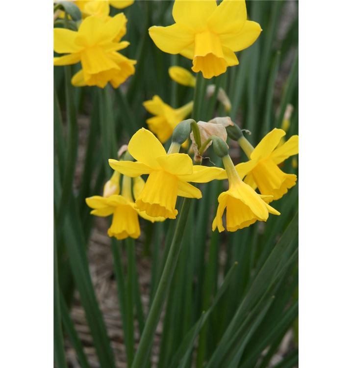 Mindestabnahme 10 Stück kräftig goldgelber, ganz flacher, überlappender Perianth mit fast gleichfarbener, langer und relativ schmaler Krone, die am Rand etwas aufgebogen ist, 50cm, April