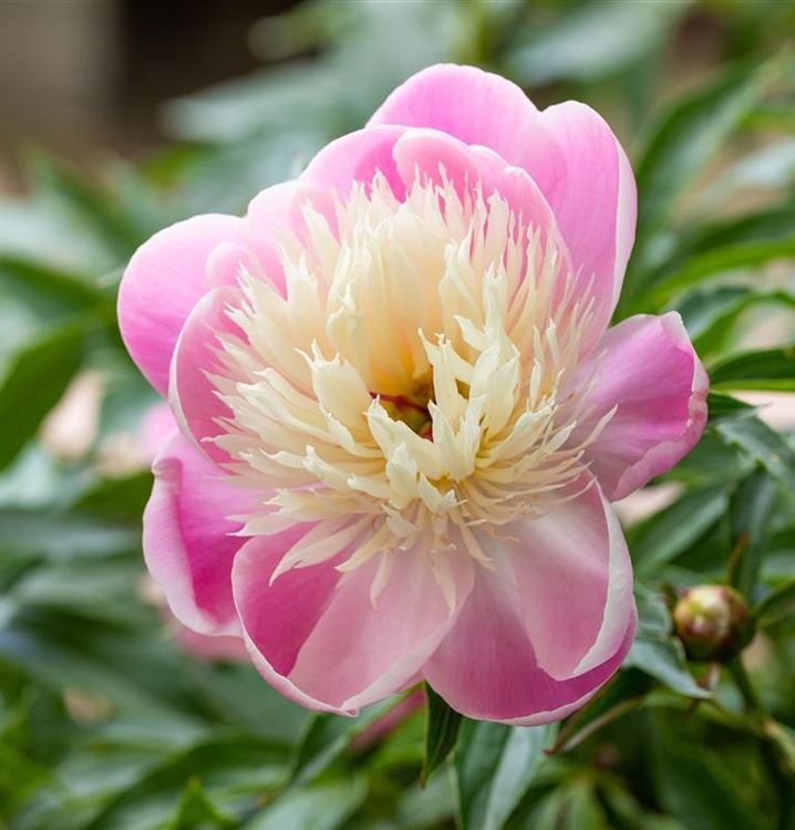 Im Beet ist die Garten-Pfingstrose 'Bowl of Beauty' (Paeonia lactiflora 'Bowl of Beauty') besonders in Einzelstellung ein Prachtexemplar, macht aber auch in Blumenkübeln eine gute Figur. Mit ihren schalenförmigen, halbgefüllten Blüten in Cremeweiss-rosa ist die Garten-Pfingstrose 'Bowl of Beauty' von Mai bis Juni ein Blickfang. Doch sie ist nicht nur eine Augenweide, denn die Blüten verbreitet auch noch einen angenehmen Duft. Ihre gefingerten Blätter tragen ebenso zu ihrer Wirkung bei. Sie sind dunkelgrün gefärbten.