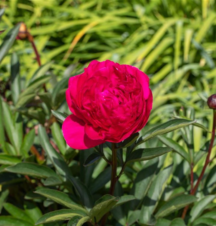 Im Beet ist die Bauerngarten-Pfingstrose 'Rubra Plena' (Paeonia officinalis 'Rubra Plena') besonders in Einzelstellung ein Prachtexemplar, macht aber auch in Blumenkübeln eine gute Figur. Mit ihren schalenförmigen, gefüllten Blüten in Dunkelrot ist die Bauerngarten-Pfingstrose 'Rubra Plena' von Mai bis Juni ein Blickfang. Doch sie ist nicht nur eine Augenweide, denn die Blüten verbreitet auch noch einen angenehmen Duft. Ihre gefingerten Blätter tragen ebenso zu ihrer Wirkung bei. Sie sind dunkelgrün gefärbten.