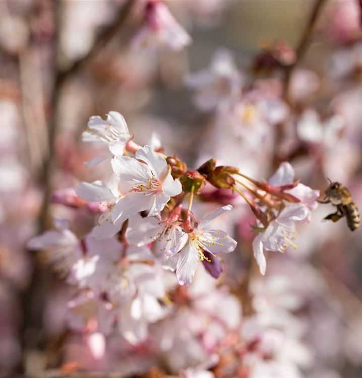Die Blütezeit beginnt für die Kurilenkirsche 'Ruby' ab April. Dann trägt sie rosafarbene Blüten.