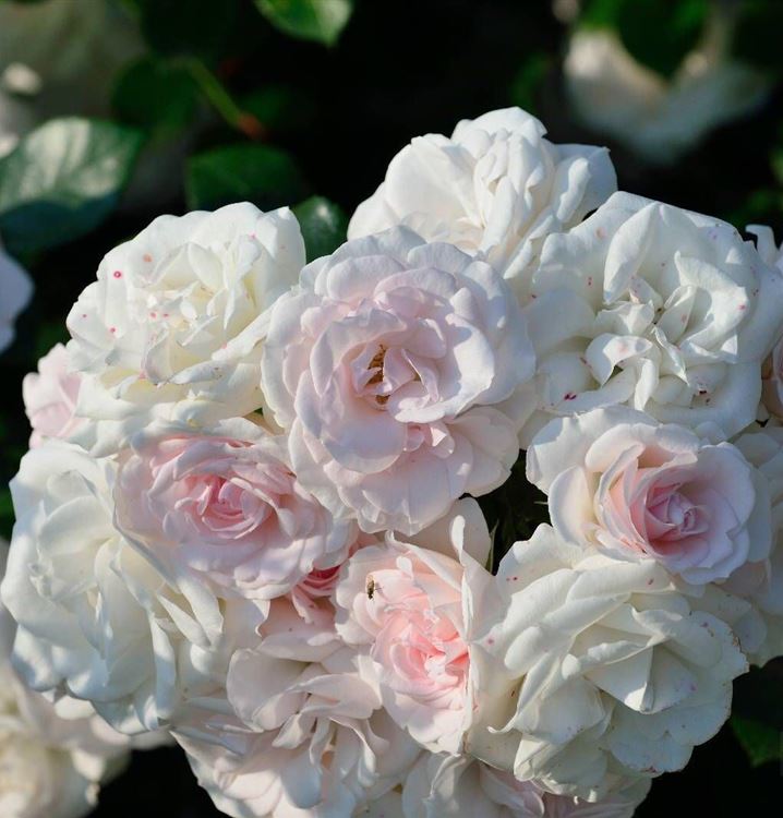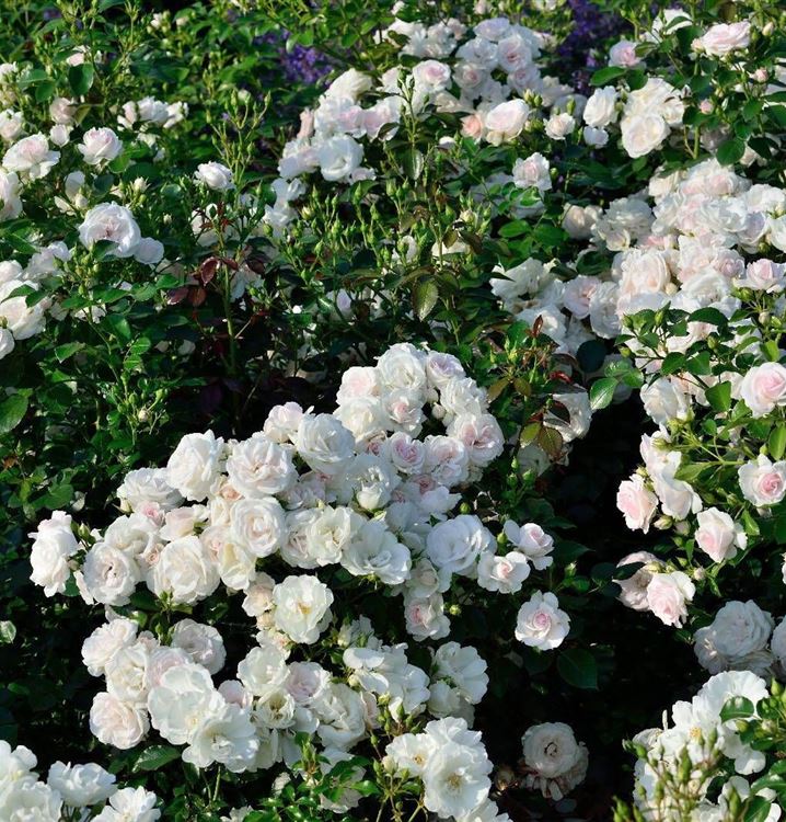 Ca. 0.7 m; weiss gefüllt mit zartem Roséton; sehr robust; breitbuschig
