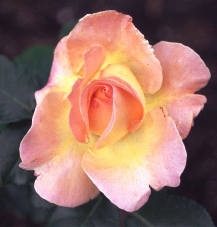 Die Blütezeit beginnt für die Edelrose 'Elle'® ab Juni. Dann trägt sie schalenförmige, apricot-rosafarbene Blüten. Noch dazu sind sie gefüllt und verströmen einen starken Duft. Bis Oktober hält die Blüte an.