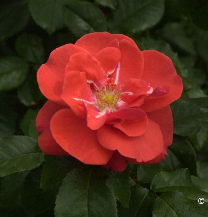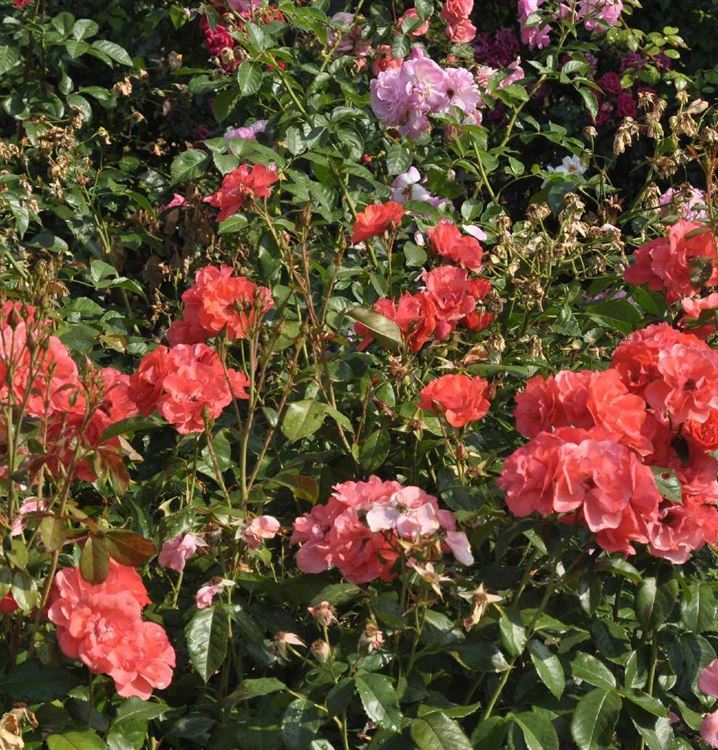 Ca1.2-1.5 m; feuerorange, halbgefüllt, öfter blühend, leichter Duft, Juni/Oktober