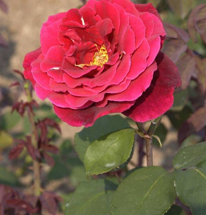 Dem Ruf die Königin der Blumen zu sein wird die Edelrose 'Mister Lincoln' (Rosa 'Mister Lincoln') ohne Anstand gerecht. Vor allem sind es ihre schalenförmigen, gefüllten, dunkelroten Blüten, die diese Wirkung erzeugen. Sie trägt sie von Juni bis Oktober und lässt sie einen angenehmen Duft verströmen. Dazu zeigt sich ihr dunkelgrünes, gefiedertes Laub sehr Robust gegenüber Blattkrankheiten.