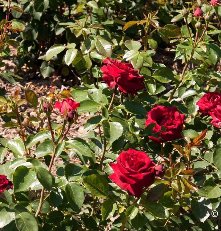 Dem Ruf die Königin der Blumen zu sein wird die Beetrose 'Niccolo Paganini'® (Rosa 'Niccolo Paganini'®) ohne Anstand gerecht. Vor allem sind es ihre schalenförmigen, roten Blüten, die diese Wirkung erzeugen. Sie trägt sie von Juni bis September und lässt sie einen angenehmen Duft verströmen.