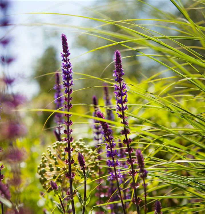 Der Garten-Blüten-Salbei 'Caradonna' (Salvia nemorosa 'Caradonna') ist zum Beispiel eine hervorragende Steingartenpflanze, genauso wie er in Blumenkübeln eine gute Figur macht. Mit seinen lippenförmigen Blüten in Violett ist der Garten-Blüten-Salbei 'Caradonna' von Juni bis Juli ein Blickfang. Dabei ist er nicht nur eine Augenweide, denn seine Blüten werden auch gerne von Bienen und anderen Insekten angeflogen. Seine lanzettlichen Blätter tragen ebenso zu seiner Wirkung bei. Sie sind mittelgrün gefärbten.