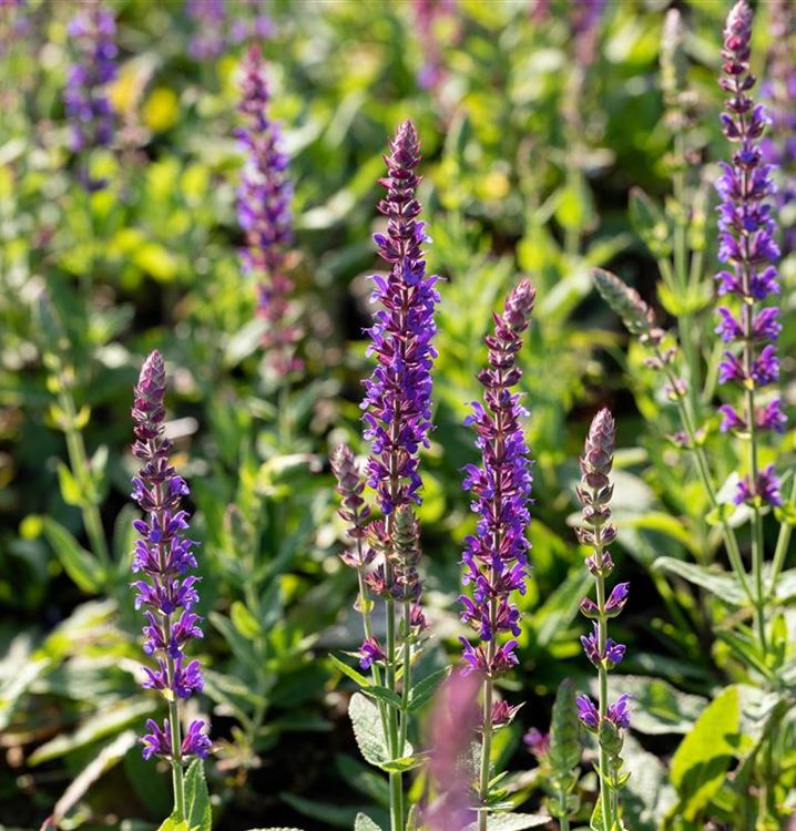 Der Garten-Blüten-Salbei 'Ostfriesland' ist eine hervorragende Steingartenpflanze, genauso wie er in Blumenkübeln eine gute Figur macht. Mit seinen lippenförmigen Blüten in Violett ist der Garten-Blüten-Salbei 'Ostfriesland' von Juni bis Juli ein Blickfang. Dabei ist er nicht nur eine Augenweide, denn seine Blüten werden auch gerne von Bienen und anderen Insekten angeflogen. Seine lanzettlichen Blätter tragen ebenso zu seiner Wirkung bei. Sie sind mittelgrün gefärbten.