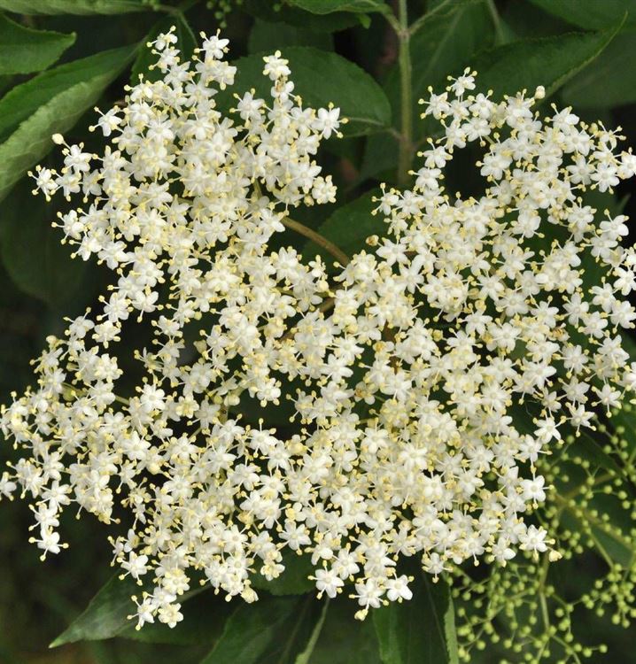 Der Schwarze Holunder 'Haschberg' ist bekannt für seinen Gehalt an Vitamin A, Kalium und Vitamin C.
