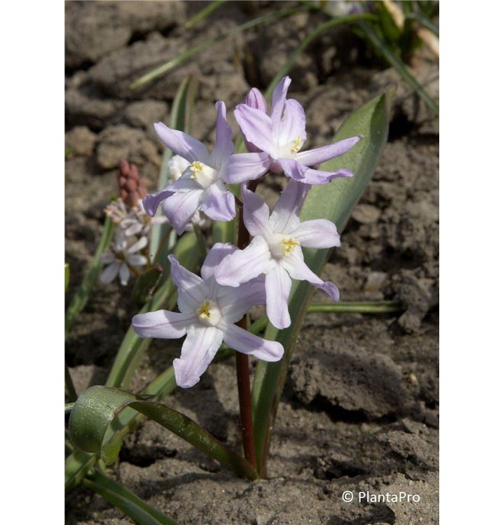 August - Dezember wird der Zweiblättriger Blaustern 'Rosea' gepflanzt, dabei kommen die Zwiebeln bzw. Knollen etwa 8 cm bis 10 cm tief in die Erde.