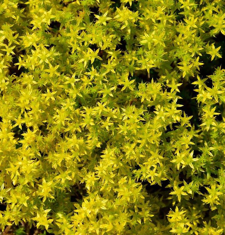 Mit seinen Blüten in Gelb ist der Milde Mauerpfeffer von Juni bis Juli ein Blickfang. Da es sich um eine wintergrüne Staude handelt, sorgen die Blätter auch im Winter für farbliche Akzente.