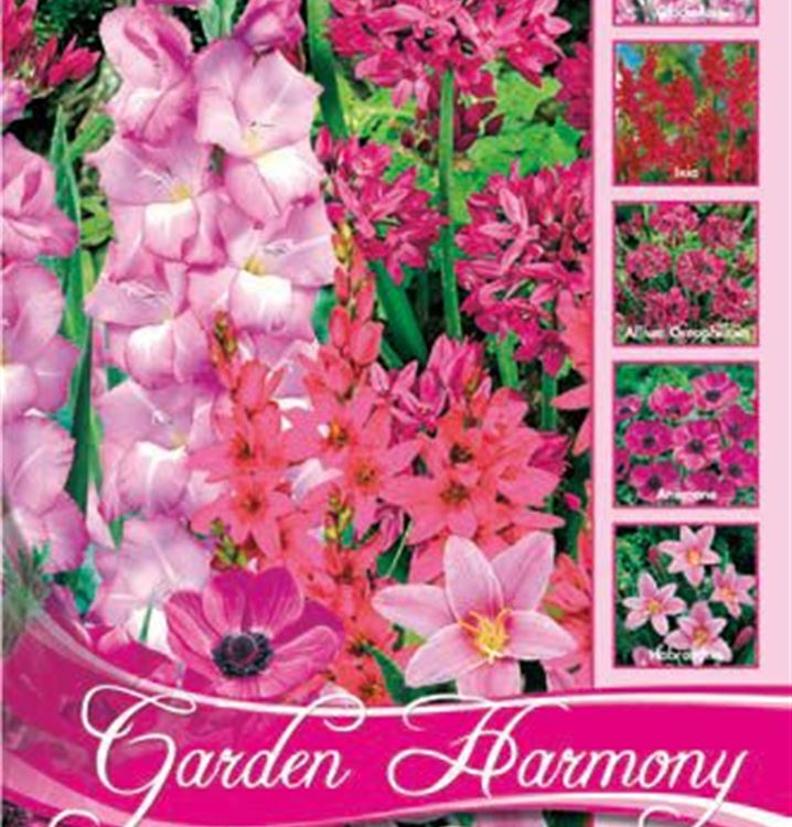 Packungsinhalt 75 Stück 10 Gladiolen rosa 8/10; 20 Ixia rosa 5/6; 20 Allium oreophilum 4/5; 15 Anemonen Sylphide 4/5; 10 Habranthus Robustus 5/6
