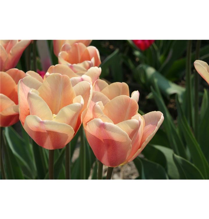 In schön bepflanzten Rabatten, aber auch in Kübeln auf der Terrasse oder in Kästen auf dem Balkon ist die Tulpe 'Apricot Foxx' (Tulipa 'Apricot Foxx') immer wieder gern gesehen. Mit ihren Blüten in Apricot oder Rosa trägt die Tulpe 'Apricot Foxx' von April bis Mai auf ihre Weise zur Gestaltung bei. Dabei ist sie nicht nur eine Augenweide, denn sie verbreitet auch noch einen angenehmen Duft.