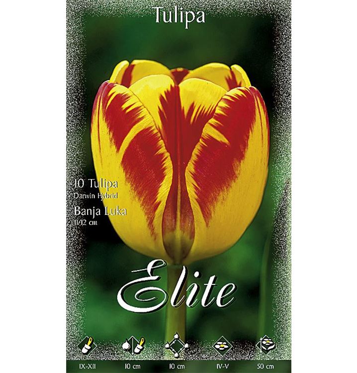 Die Blütezeit beginnt für die Darwin-Tulpe 'Banja Luka' ab April. Dann trägt sie 6 cm bis 8 cm grosse, gelb-rote Blüten. Noch dazu verströmen sie einen angenehmen Duft. Bis Mai hält die Blüte an.