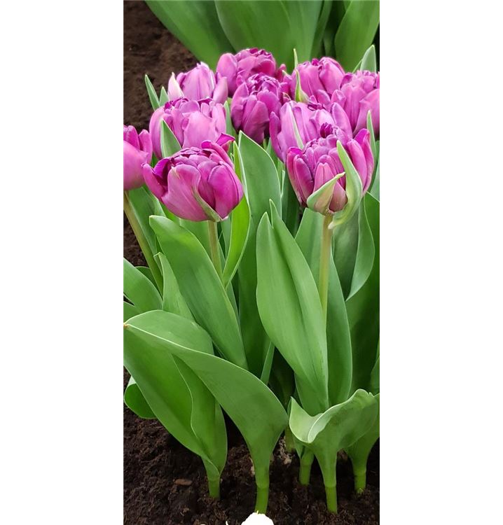 Die Blütezeit beginnt für die Tulpe 'Blue Diamond' ab April. Dann trägt sie violette Blüten. Noch dazu sind sie gefüllt und verströmen einen angenehmen Duft.