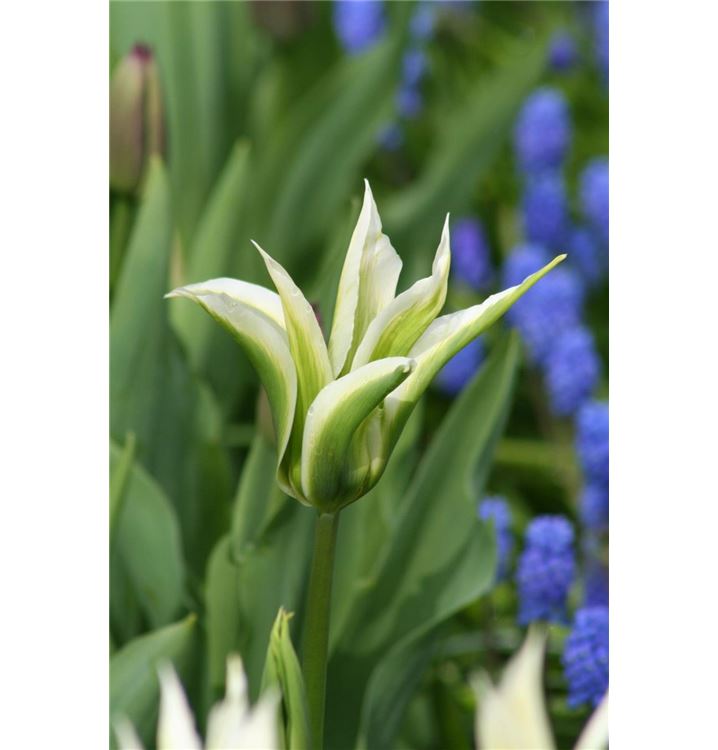 Die Blütezeit beginnt für die Tulpe ab Mai. Dann trägt sie grün-weiße Blüten.
