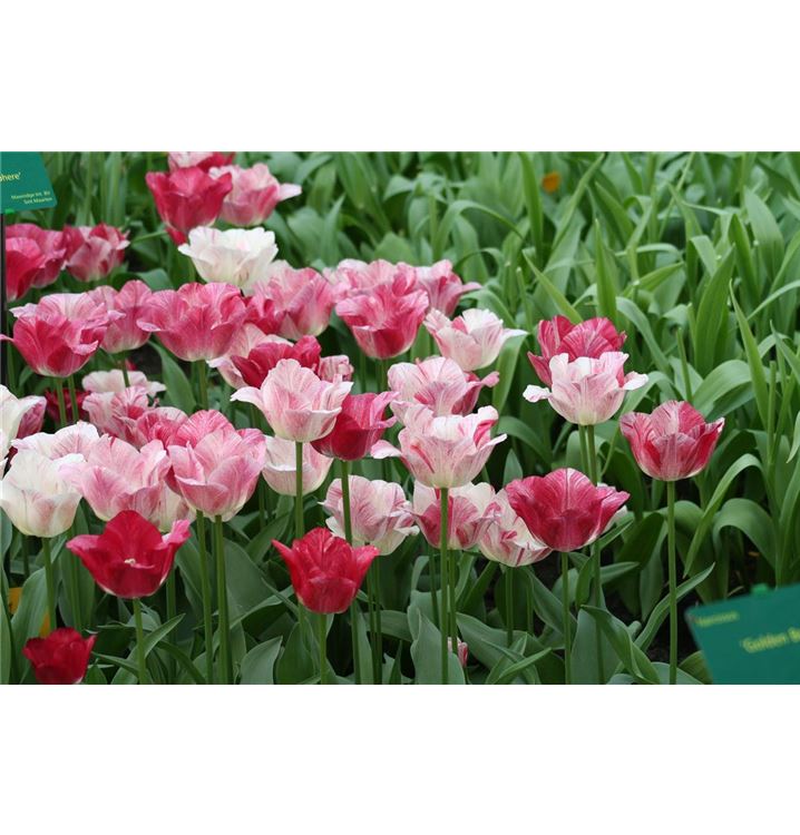 Mindestabnahme 10 Stück weiss mit rosa Flamme, im späteren Blühstadium in dunkelrosa bis rote Flamme übergehend, spielt sehr stark in der Farbe, 35cm, mittelfrüh