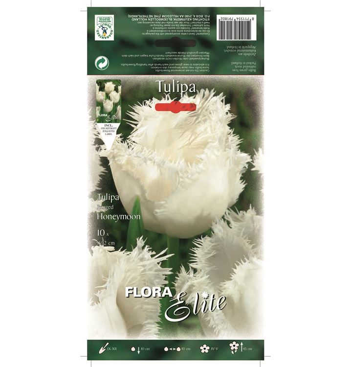 Die Blütezeit beginnt für die Gefransten Tulpe 'Honeymoon' ab April. Dann trägt sie gefranste, weisse Blüten. Noch dazu verströmen sie einen angenehmen Duft. Bis Mai hält die Blüte an.