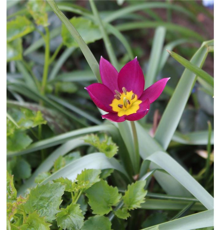 Mindestabnahme 10 Stück äussere Blütenblätter spireen- rot, innere dunkelpurpur. Basis aussen grün gestreift, innen goldgelb, 15-20cm, April