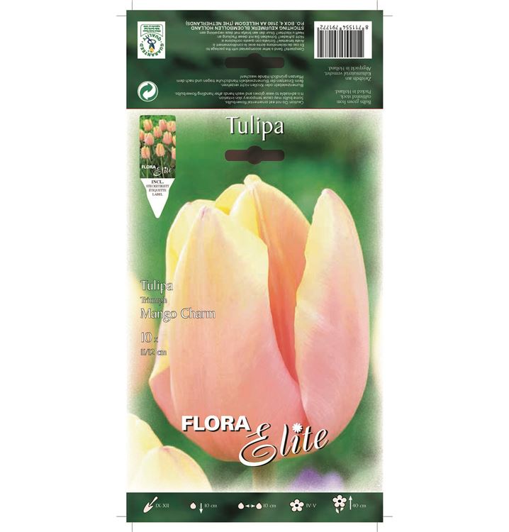 Die Blütezeit beginnt für die Triumph Tulpe 'Mango Charm' ab April. Dann trägt sie 6 cm bis 8 cm grosse, apricot-rosafarbene Blüten. Noch dazu verströmen sie einen angenehmen Duft. Bis Mai hält die Blüte an.