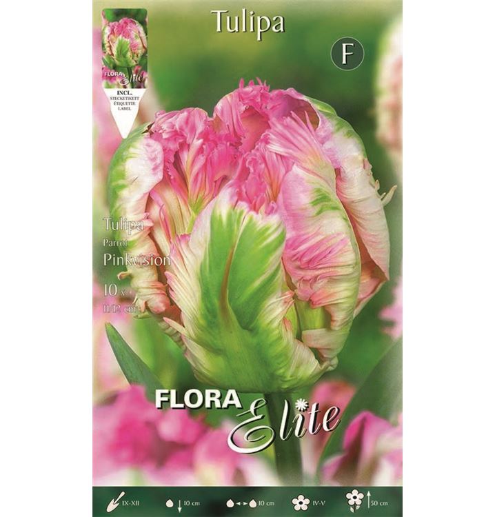 Die Blütezeit beginnt für die Papageien-Tulpe 'Pink Vision' ab April. Dann trägt sie 6 cm bis 8 cm grosse, gewellte, mehrfarbige Blüten. Noch dazu verströmen sie einen angenehmen Duft. Bis Mai hält die Blüte an.