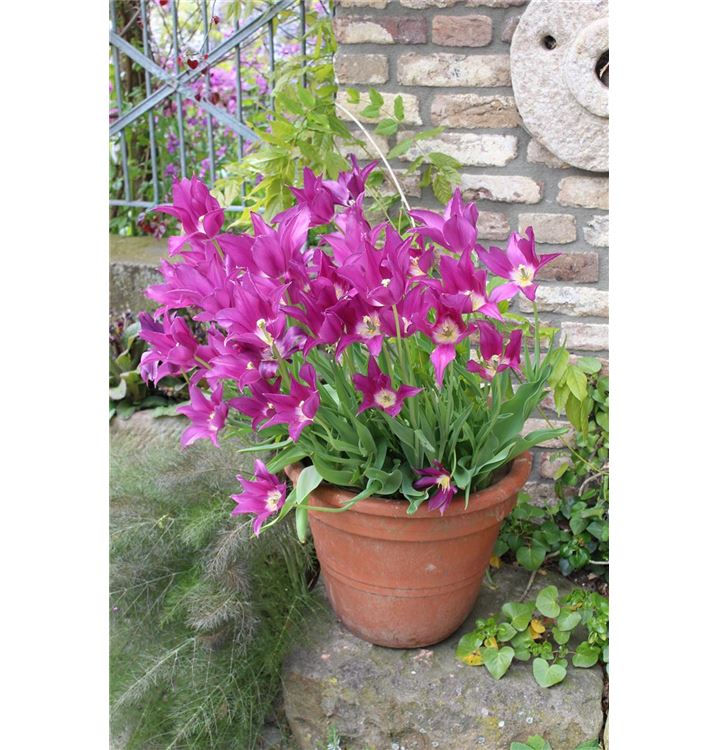 August - Dezember wird die Tulpe 'Purple Dream' gepflanzt, dabei kommen die Zwiebeln bzw. Knollen etwa 13 cm bis 15 cm tief in die Erde.