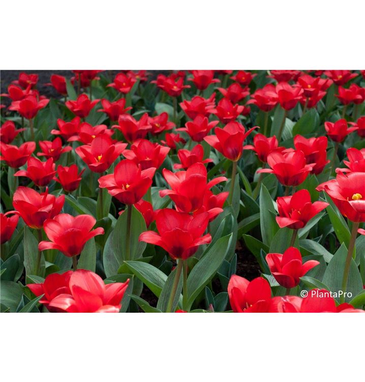 Mindestabnahme 10 Stück Aussenseite auffallend kardinalrot, innen signalrot mit gelber Basis; gestreiftes Laub, 20cm, früh