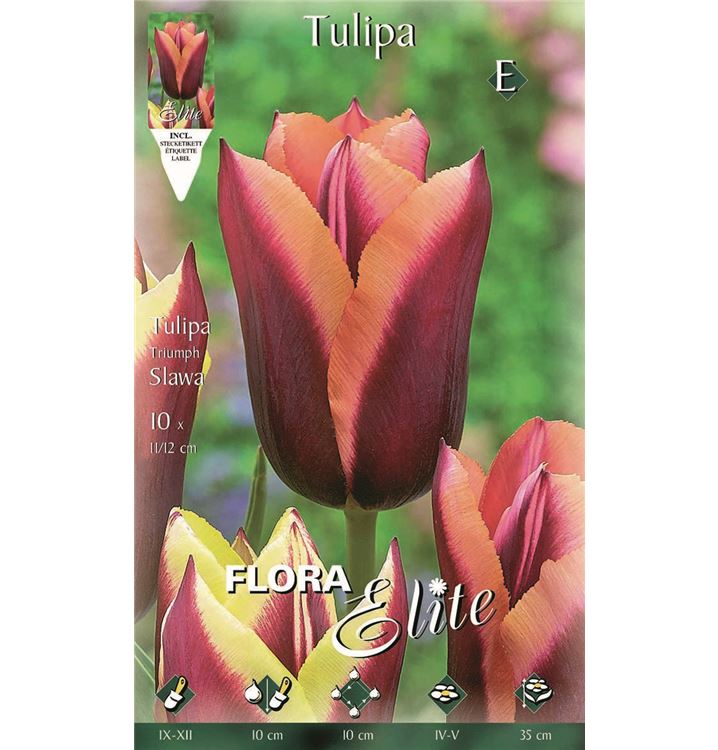 Die Blütezeit beginnt für die Tulpe 'Slawa' ab April. Dann trägt sie 6 cm bis 8 cm grosse, rot-orange Blüten. Noch dazu verströmen sie einen angenehmen Duft. Bis Mai hält die Blüte an.