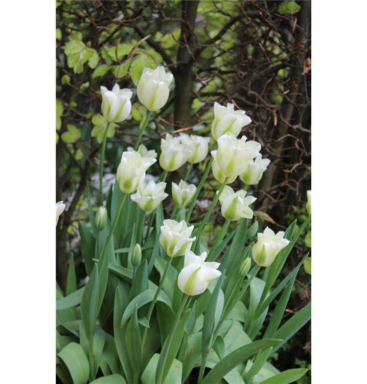 In schön bepflanzten Rabatten, aber auch in Kübeln auf der Terrasse oder in Kästen auf dem Balkon ist die Tulpe 'Spring Green' (Tulipa viridiflora 'Spring Green') immer wieder gern gesehen. Mit ihren Blüten in Grün-weiß trägt die Tulpe 'Spring Green' von April bis Mai auf ihre Weise zur Gestaltung bei. Als Grundlage dienen dabei ihre linealen Blätter in Dunkelgrün.