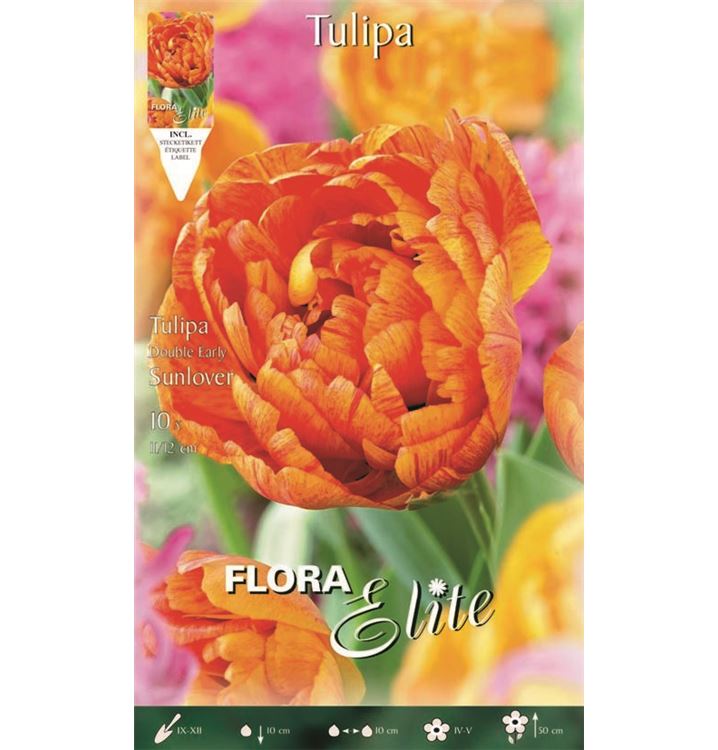 In schön bepflanzten Rabatten, aber auch in Kübeln auf der Terrasse oder in Kästen auf dem Balkon ist die Tulpe 'Sunlover' (Tulipa 'Sunlover') immer wieder gern gesehen. Mit ihren gefüllten Blüten in Orange-gelb trägt die Tulpe 'Sunlover' von April bis Mai auf ihre Weise zur Gestaltung bei. Dabei ist sie nicht nur eine Augenweide, denn sie verbreitet auch noch einen angenehmen Duft. Als Grundlage dienen dabei ihre linealen Blätter in Dunkelgrün.