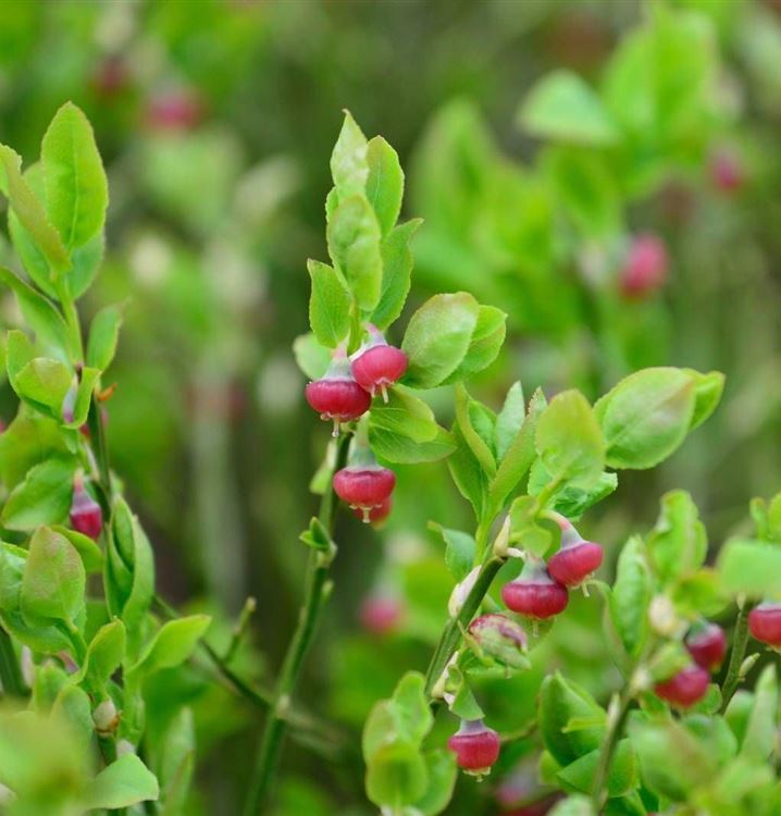Die Blütezeit beginnt für die Blaubeere ab Mai. Dann trägt sie becherförmige, grün-rote Blüten. Bis Juni hält die Blüte an.