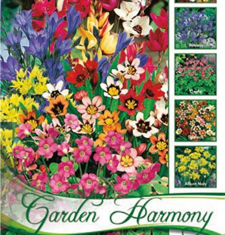 Packungsinhalt 100 Stück 20 Allium moly; 20 Ixia-Mischung; 20 Oxalis deppei Iron Cross; 20 Sparaxis-Mischung; 20 Triteleia Queen Fabiola