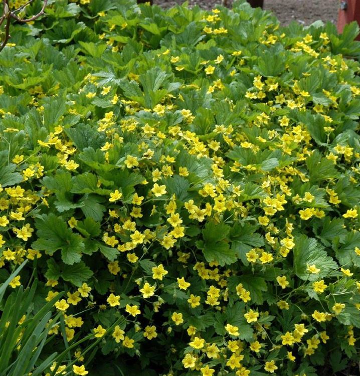 Stauden sind in der Gartengestaltung fast ein Muss, gibt es doch für nahezu jeden Standort die passenden Pflanzen. Die Dreiblättrige Waldsteinie (Waldsteinia ternata) ist zum Beispiel ein hervorragender Bodendecker. Mit ihren schalenförmigen Blüten in Gelb ist die Dreiblättrige Waldsteinie von April bis Mai ein Blickfang. Ihre herzförmigen bis dreizähligen, gekerbten Blätter tragen ebenso zu ihrer Wirkung bei. Sie sind mittelgrün gefärbten. Da es sich um eine wintergrüne Staude handelt, sorgen die Blätter auch im Winter für farbliche Akzente.